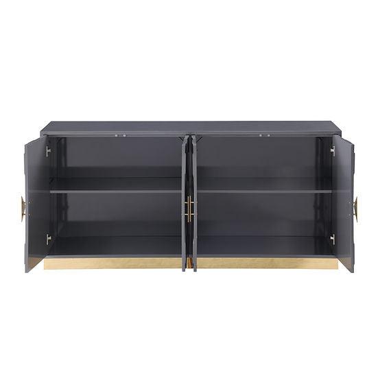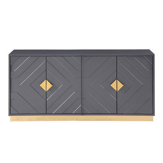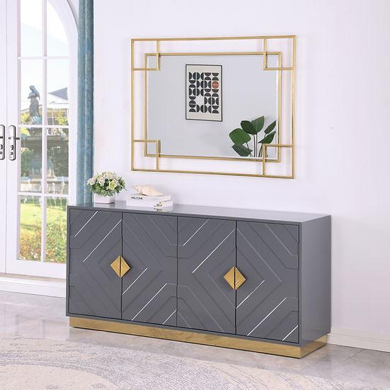 Material: Wood Frame, Door in Carving Design, Gold Stainless Steel Door Pull and Base