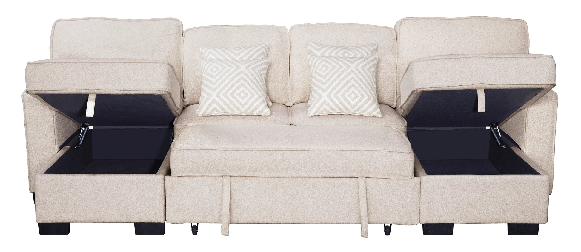 Sahara Beige Double Storage Chaise Sectional with Drop Down Cupholders