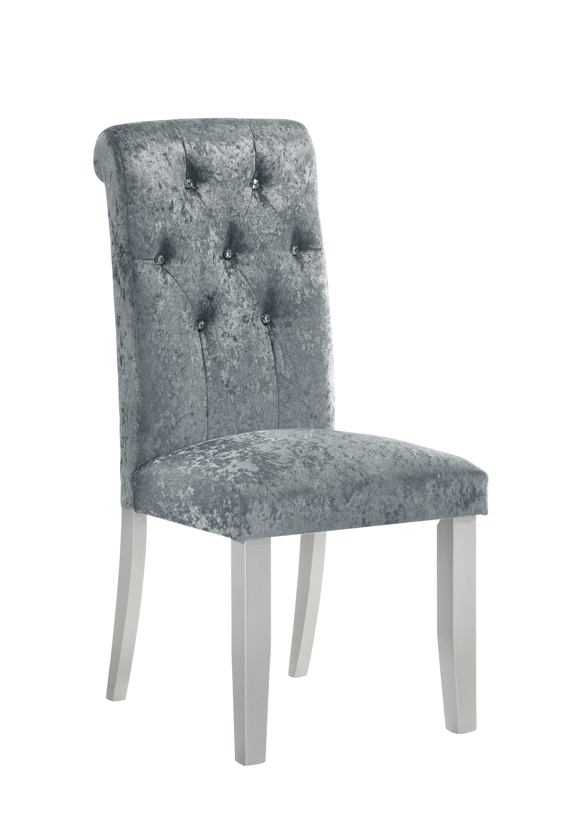 Bring the bling with this glamorous dining set. The sturdy dining table features glittering accents on the sides. Classically shaped parson chairs with rolled backs are upholstered in luxe crushed velvet and tufted with faux crystal buttons.